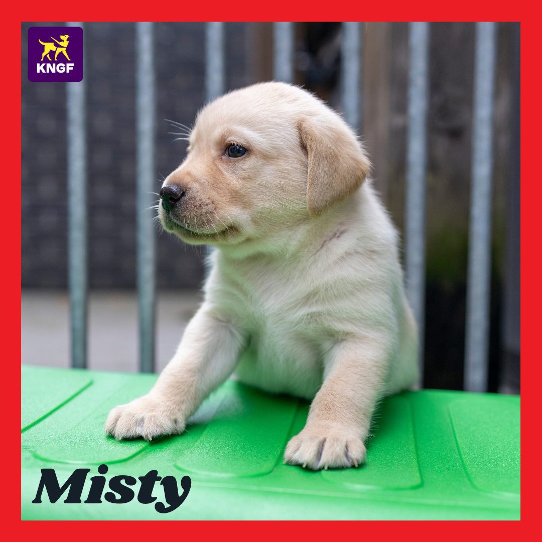 Op 9 oktober jl. werd pup Joska vernoemd naar soldaat der eerste klasse Jos ten Brinke, en vandaag stellen we u puppy Misty voor. Misty is op 29 oktober jl. geboren in een nest van acht pups, en vandaag vernoemd naar sergeant der eerste klasse Martijn Rosier; meer specifieker naar de hond die Martijn op 26 augustus 2007 achterliet. Met Joska en Misty zijn nu twee gesneuvelde genisten in een geleidehond vereeuwigd en daarmee geëerd.